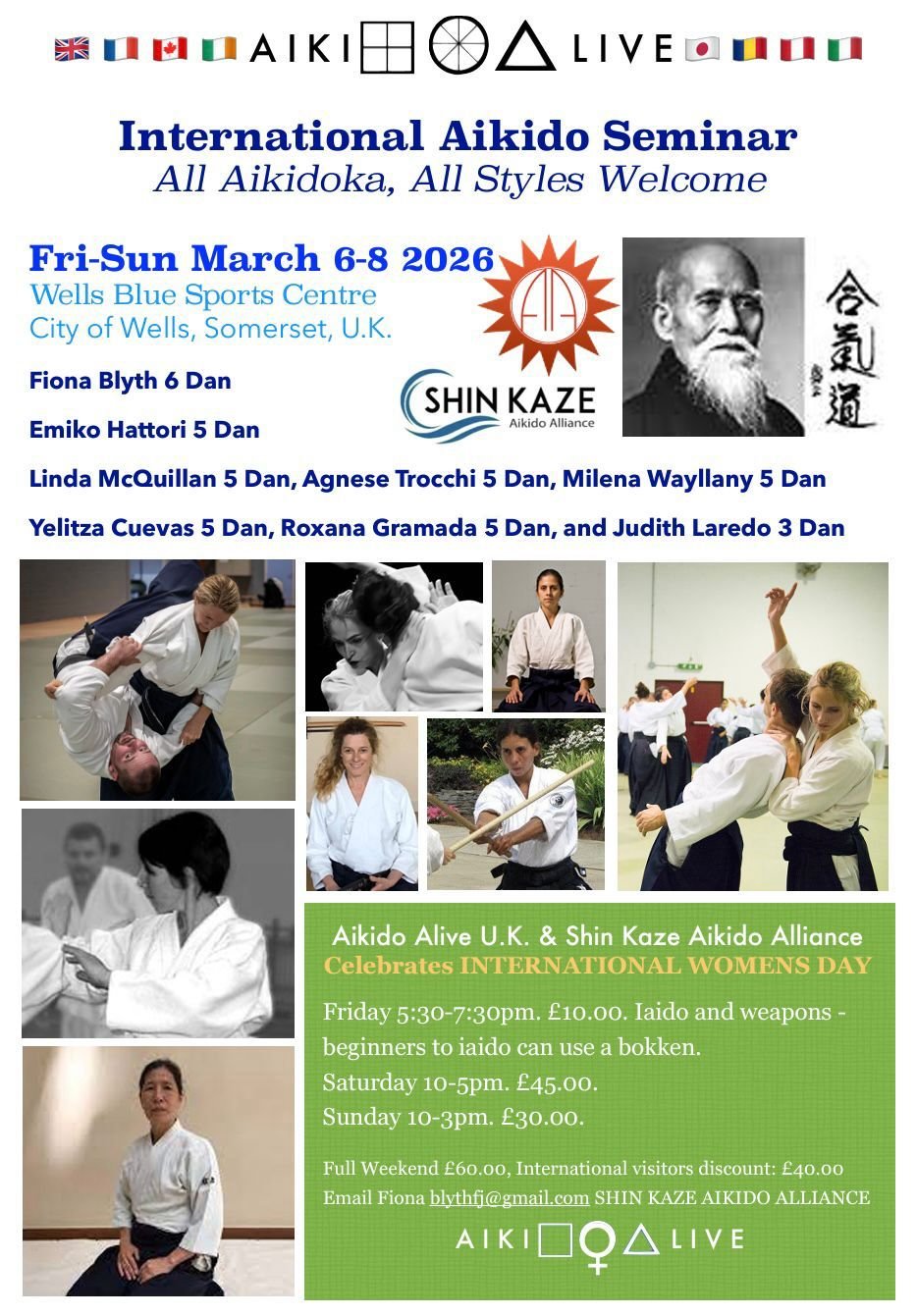 | March 6 - 8, 2026 (Friday - Sunday) Yelitza Cuevas Shidoin to International Aikido Seminar celebrating International Women's Day, in Wells, Somerset, UK. Information |